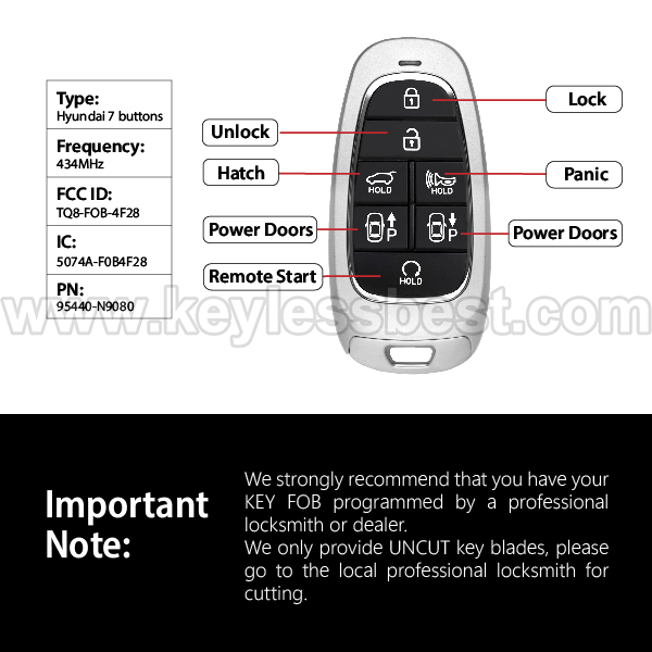 *The detailed information of this 2021-2022 Hyundai keyless remote fob is as follows. Please confirm the following details match your vehicle before ordering: FCC ID , Part Number , Year Model , IC , Frequency, Chip, and Buttons.