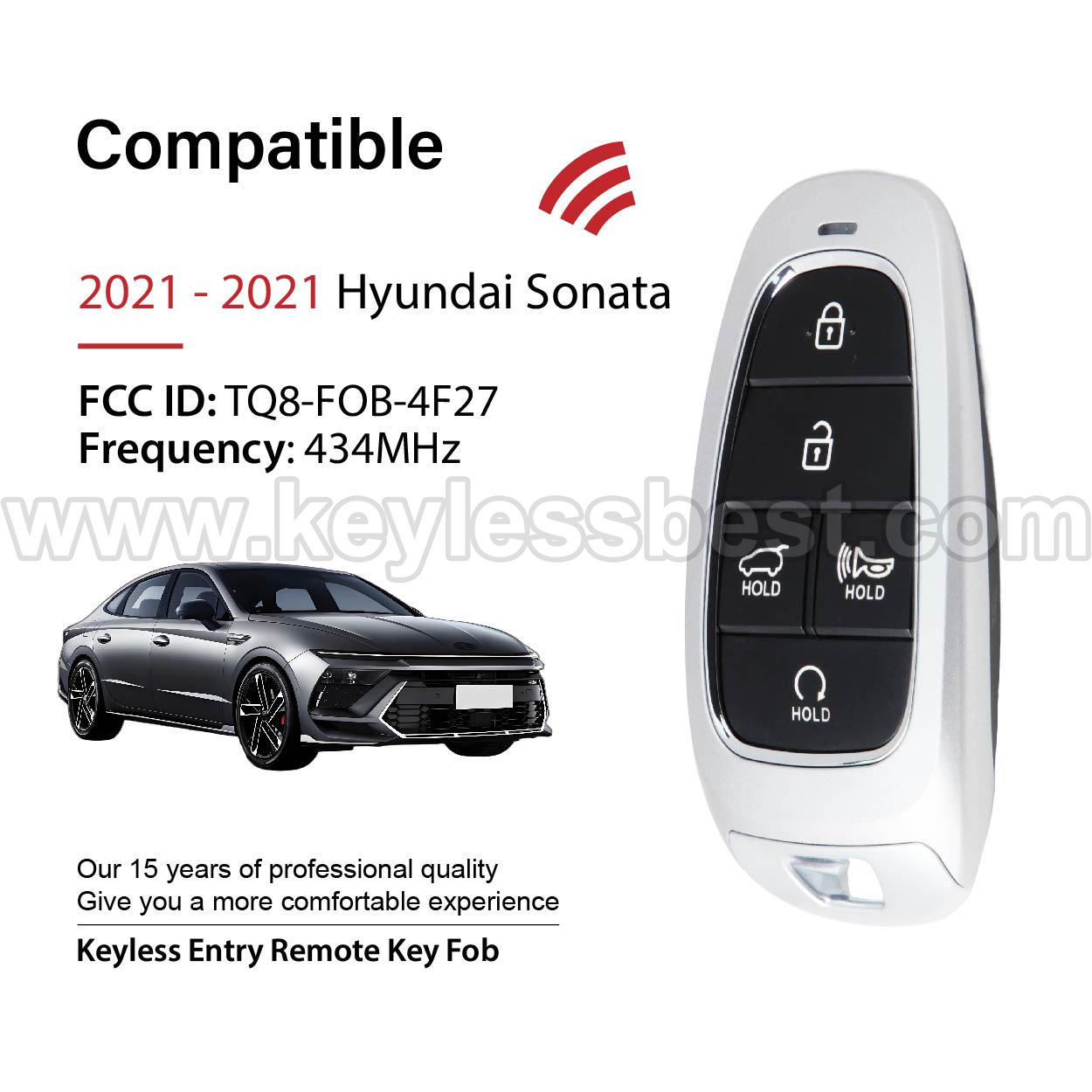 *The detailed information of this 2021 Hyundai keyless remote fob is as follows. Please confirm the following details match your vehicle before ordering: FCC ID , Part Number , Year Model ,IC, Frequency, Chip, and Buttons.