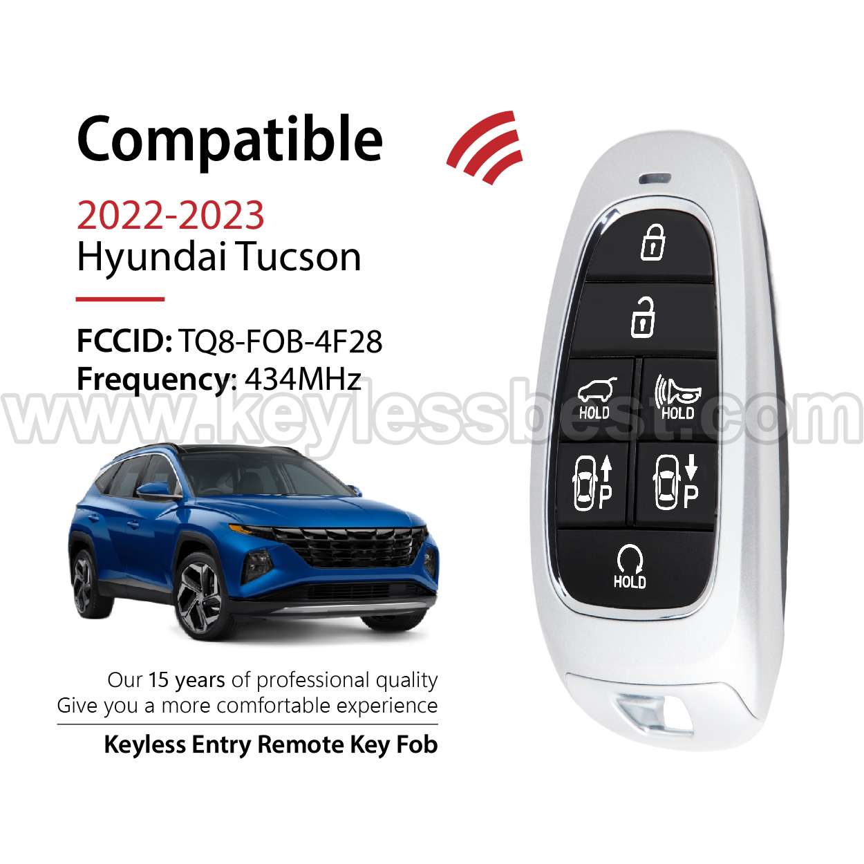 - The 2022-2023 Hyundai smart keyless entry fob replacement – without a logo, with an uncut emergency insert key included.