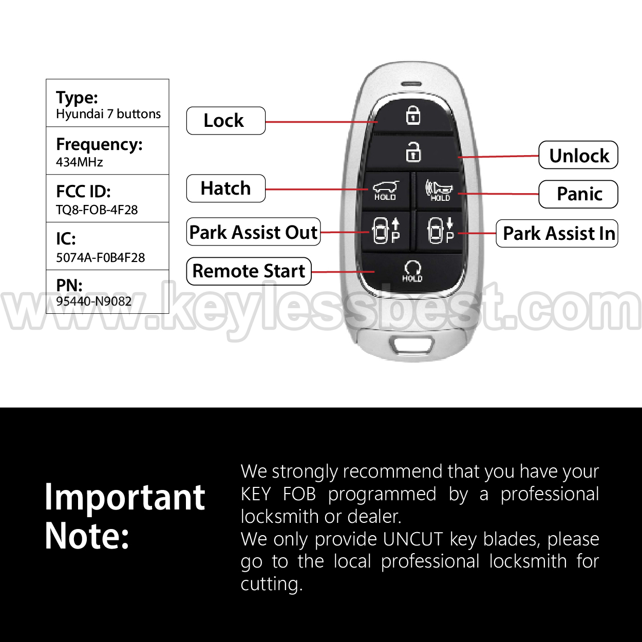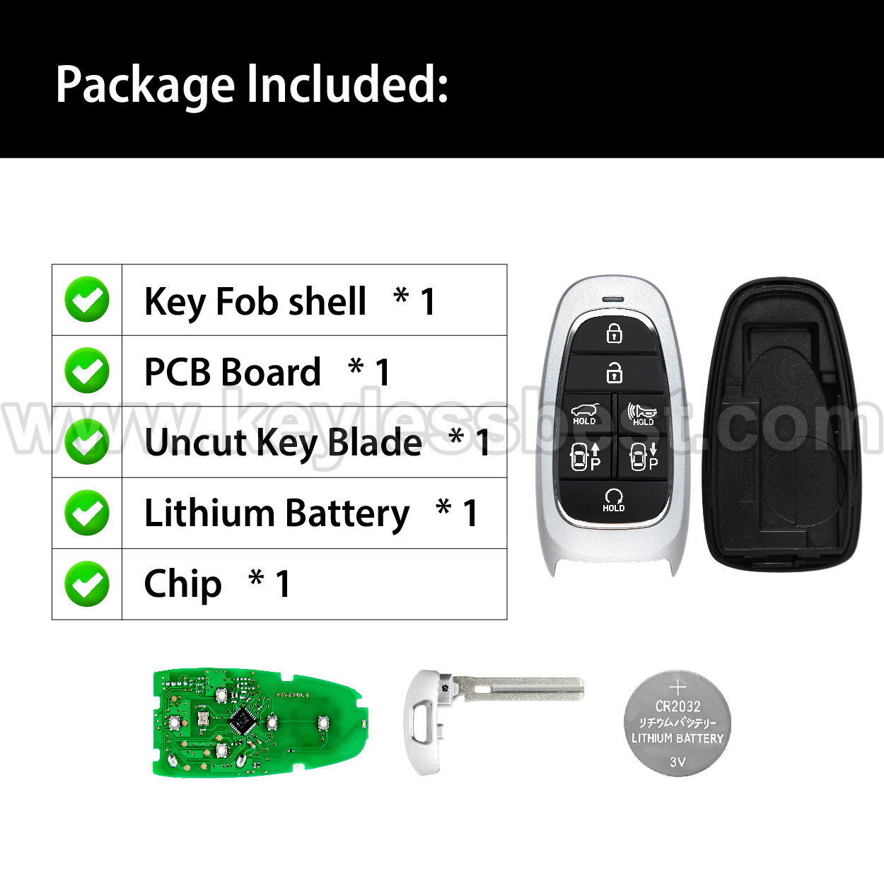 *The detailed information of this 2022-2023 Hyundai keyless remote fob is as follows. Please confirm the following details match your vehicle before ordering: FCC ID , Part Number , Year Model ,IC, Frequency, Chip, and Buttons.
