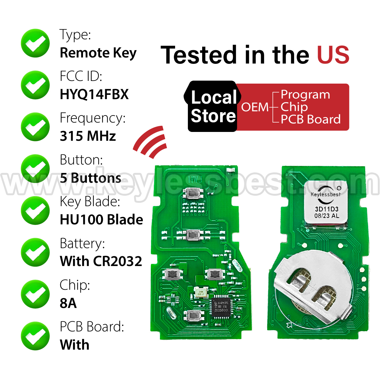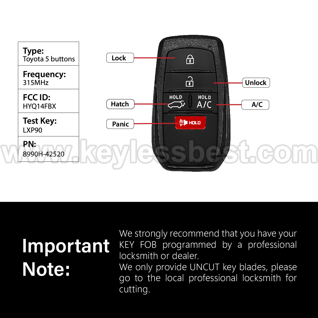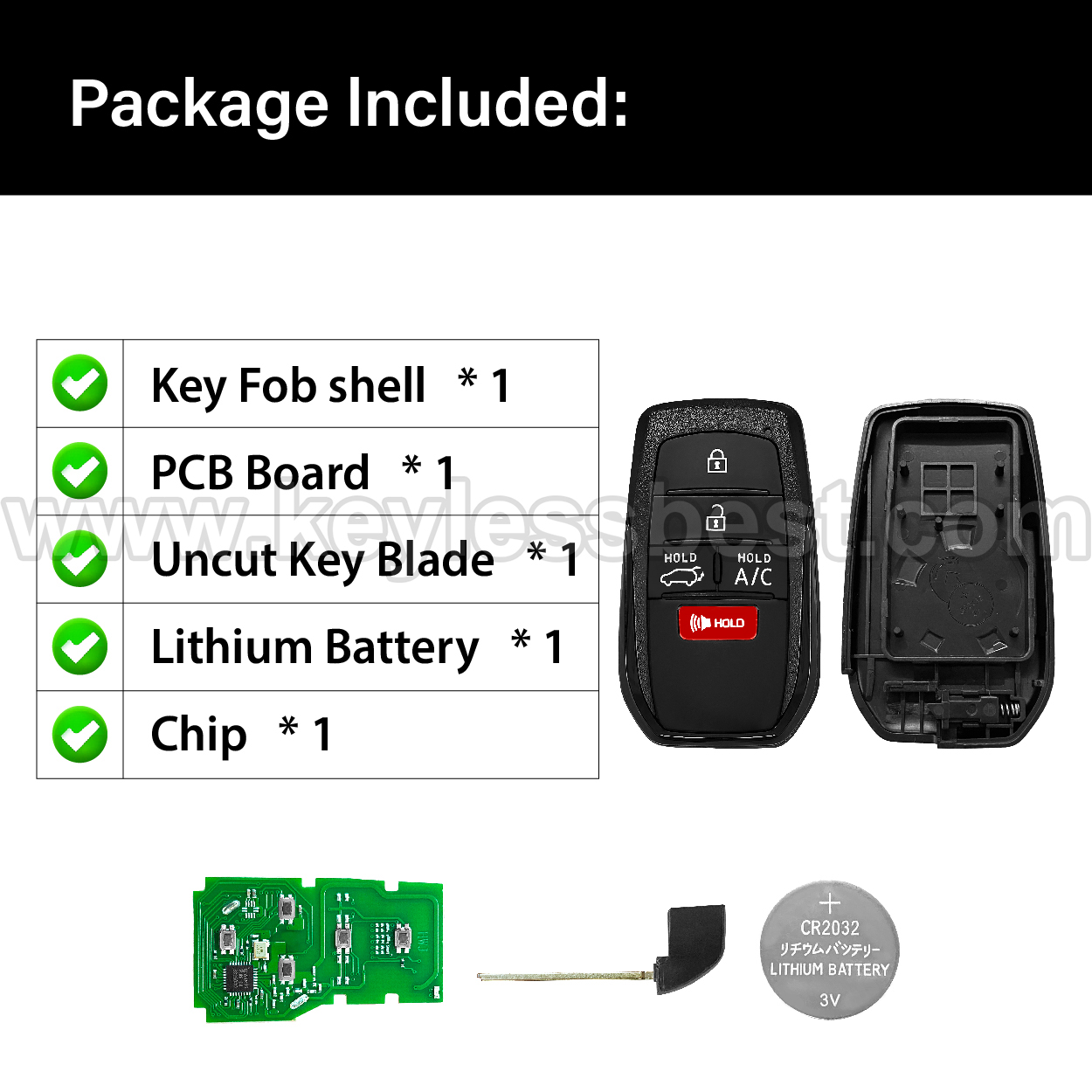 *The detailed information of this 2023 Toyota keyless remote fob is as follows. Please confirm the following details match your vehicle before ordering: FCC ID , Part Number , Year Model ,IC, Frequency, Chip, and Buttons.